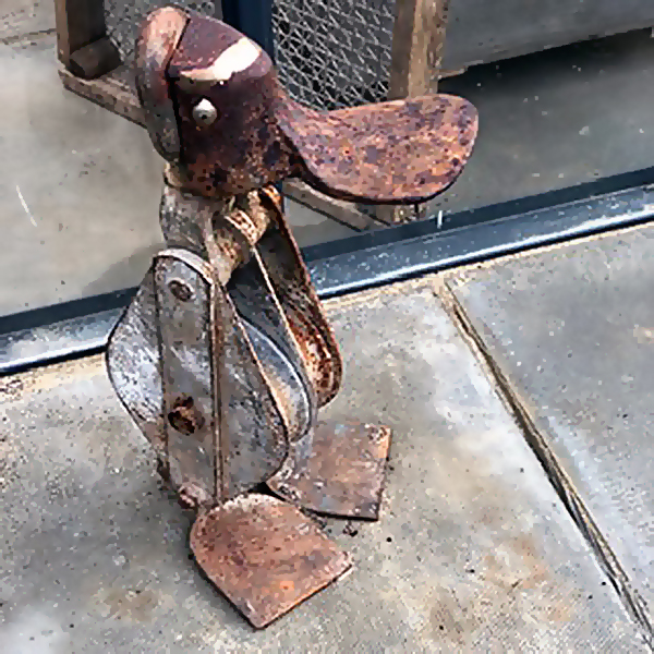 I work with a variety of materials but mainly salvaged ferrous metal. Rusty worn, broken, tools, discarded  machine parts, nails.   I like the idea that they all have a story locked in their residual form.